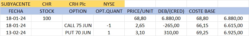 El coste base de la operación queda en 69,25 y con la compra de la put estoy protegido por debajo de 70. Ya puede irse a 0 que aún quedaría en tablas. Con el diferencial de 0.75 por acción cubro comisiones y algún café.