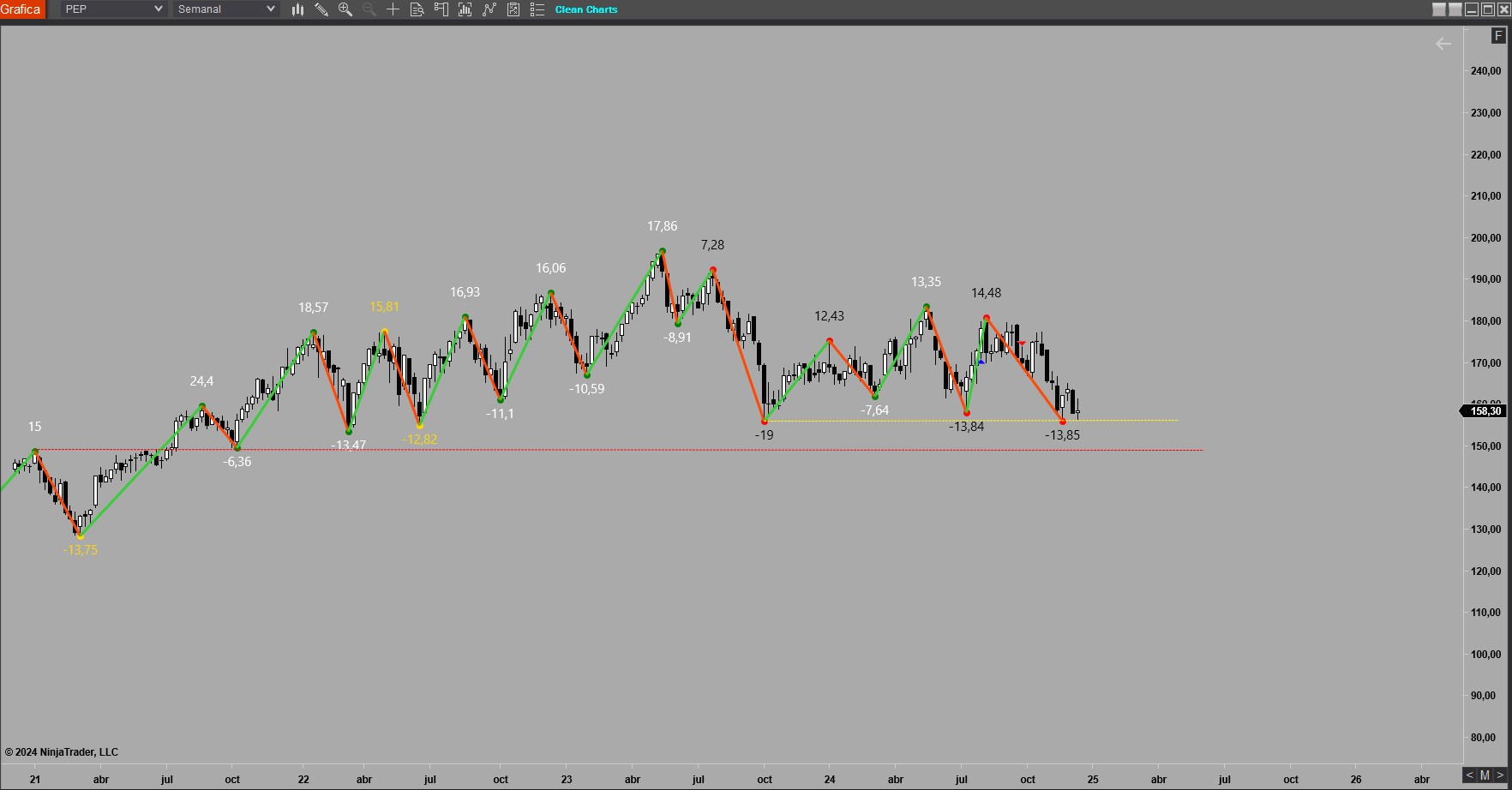 PEP presenta a 24 años una volatilidad del 14,66 %.