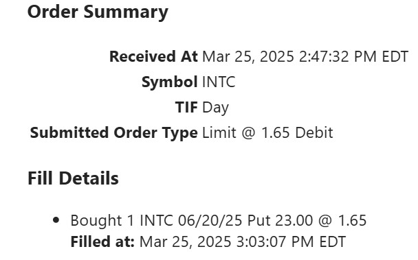 Ese escenario que presentas es muy probable y de ahí que prefiriera pagar los 1.65 por la put de protección. Si me asignan además empezaré a vender call por arriba valorando nivel del strike y prima a recibir.
