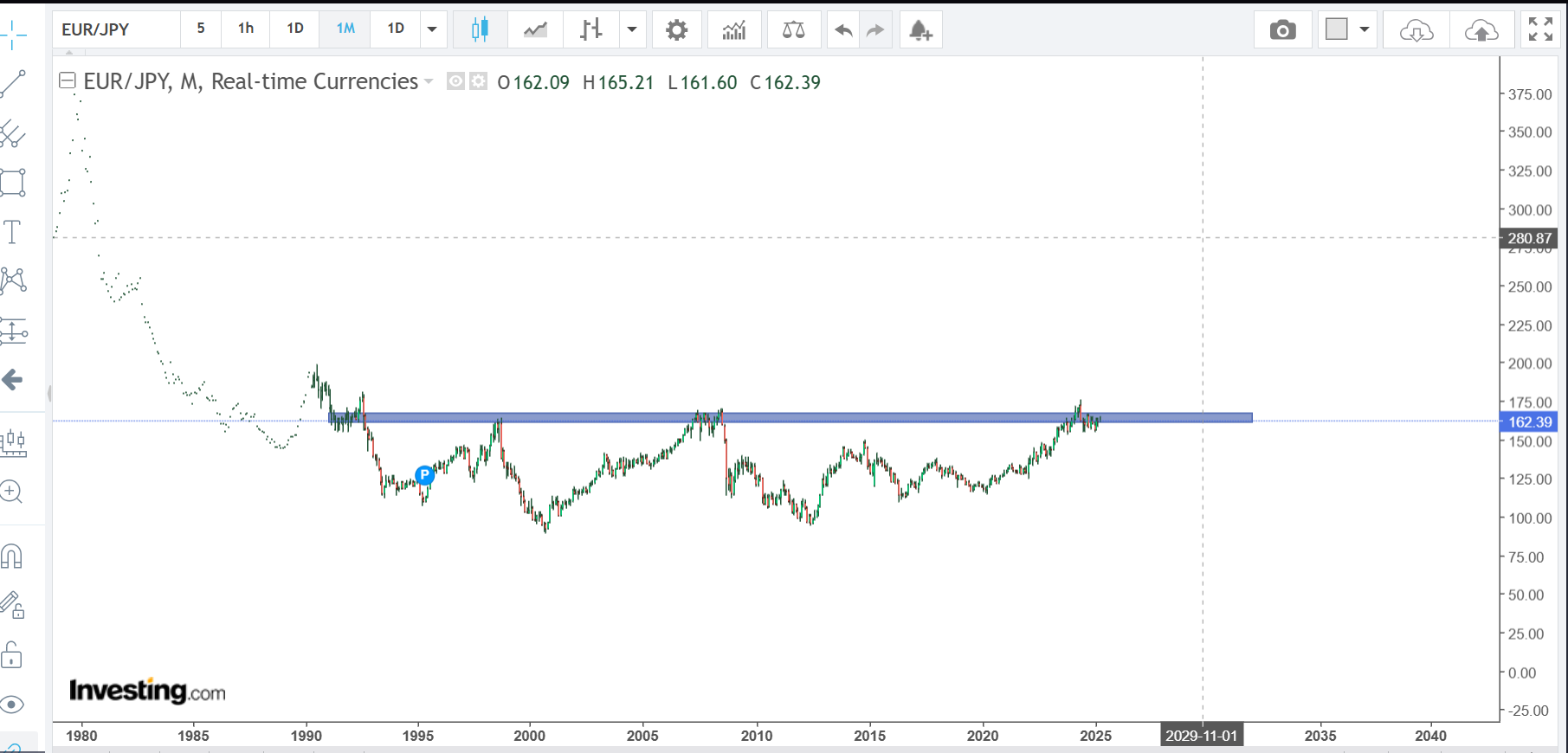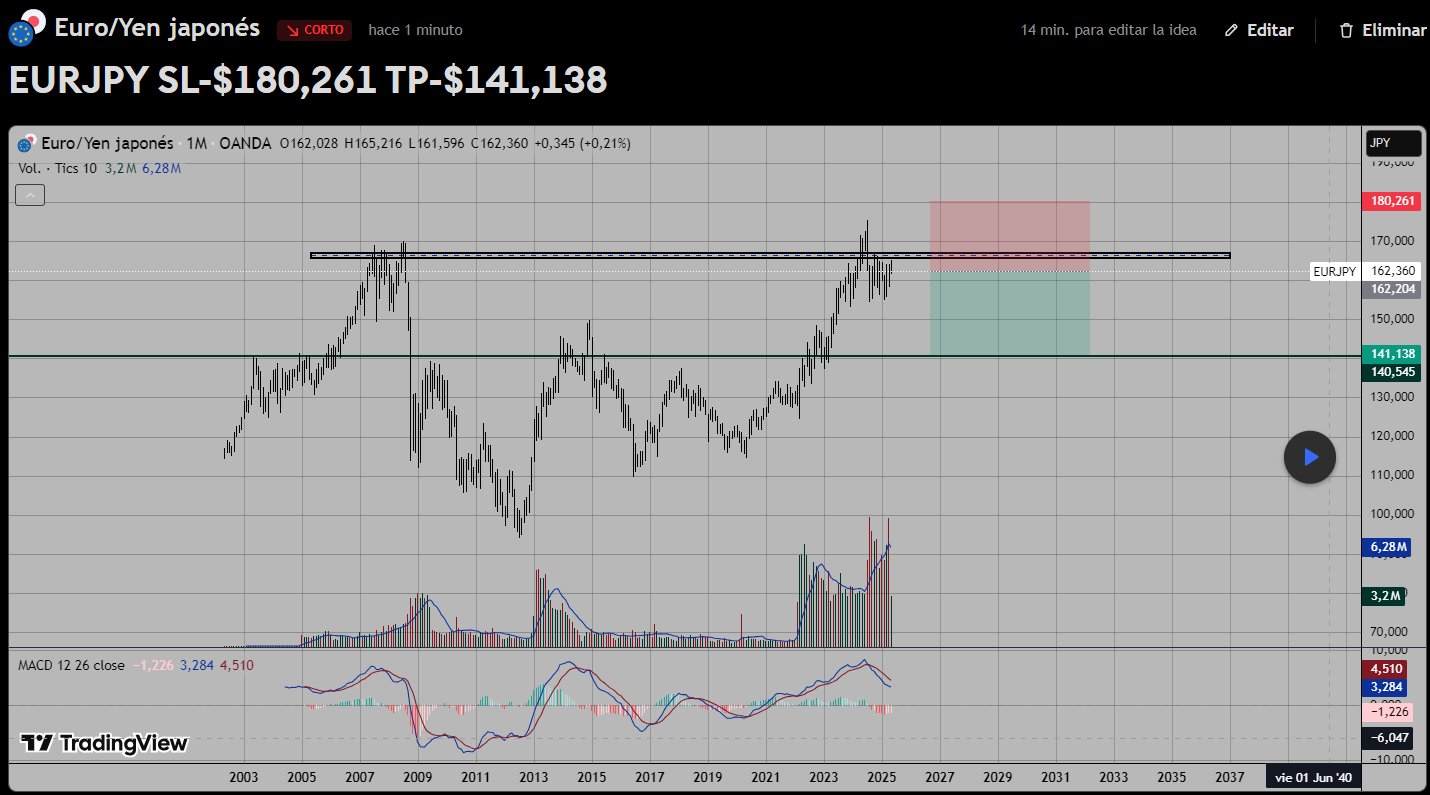 Resistencia importante que se mantiene en este par de divisas desde el año 1998. Es muy poco probable que no haya una fuerte reacción a la baja, y proyecto como objetivo más seguro los $141. Este análisis no lo operaré por la cantidad de tiempo que invertiría en desarrollarse, pero los inversores a muy largo plazo deberían hacer su propia investigación y tal vez encuentren una buena oportunidad.
