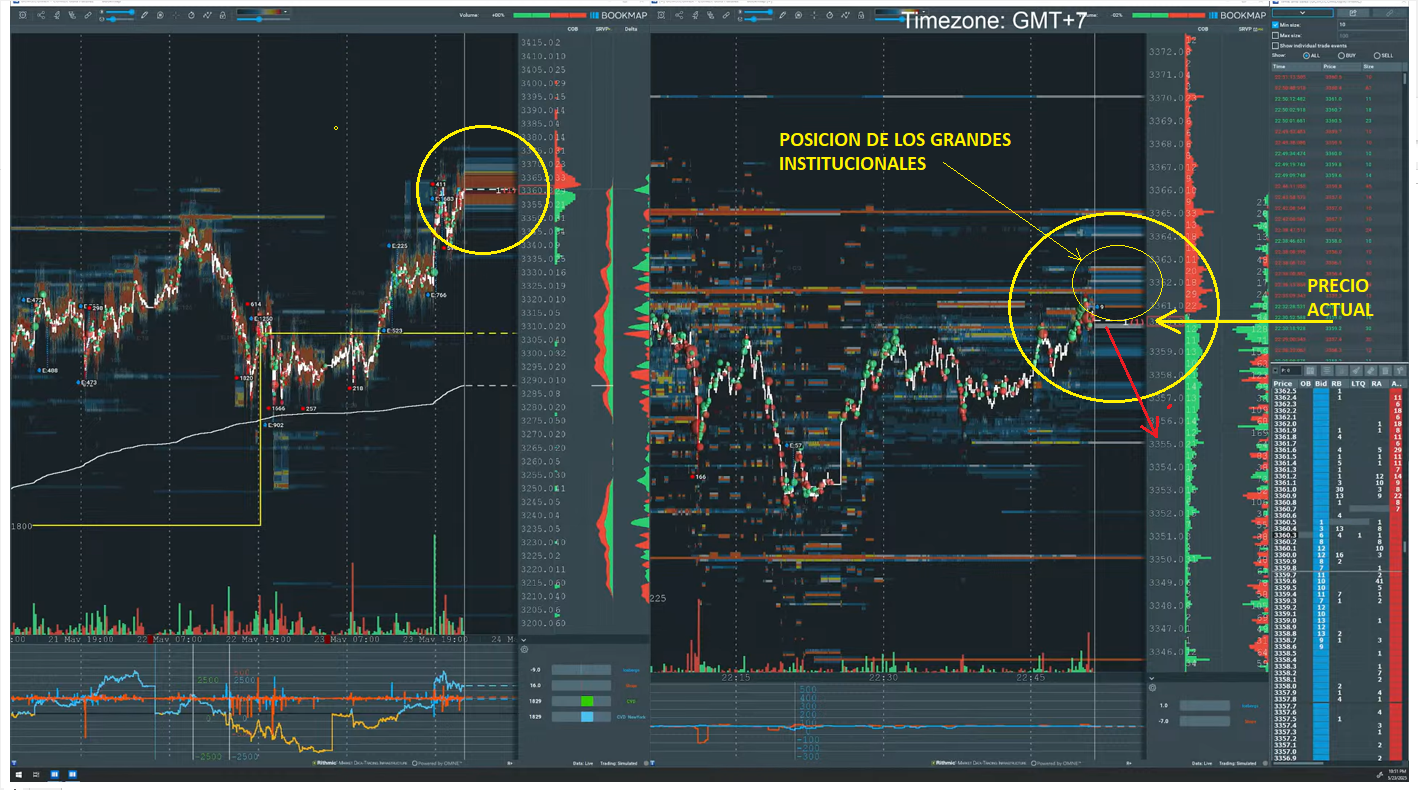 SAludos X-Trader, si son posiciones que hize hoy dia y son recientes hize una captura de pantalla y salio en el grafico, justamente ya explicare como hago mis operaciones pues hago scalping, teniendo en cuenta los institucionales que estan debajo o encima de mi un poco de price action y le meto ordenes de esa magnitud cuando el mercado esta caliente, ahi en mis operaciones utilizo heat map (mapa de calor), zona de liquidez y niveles de ganancia, aprovechando los rebotes, tambien esperando que el mercdao se encuentre muy sobre comprado o sobrevendido, pues ahi mi VWAP queda ubicado en el centro del grafico y es en dondeel mercado si o si tendra que ir a la zona del VWAP, como lo digo la mosca a la miel y solo espero un 25% de la trayectoria ubicada con un buen lotaje aseguro y lo dejo ahi, luego a pasear el perro pues la ambicion que ya me quiere embargar, es mejor retirarse a tiempo objetivo cumplido y listo ya explicare mas detalles con graficos ojala puedan entenderme, estoy para aportar y responder, gracias.....