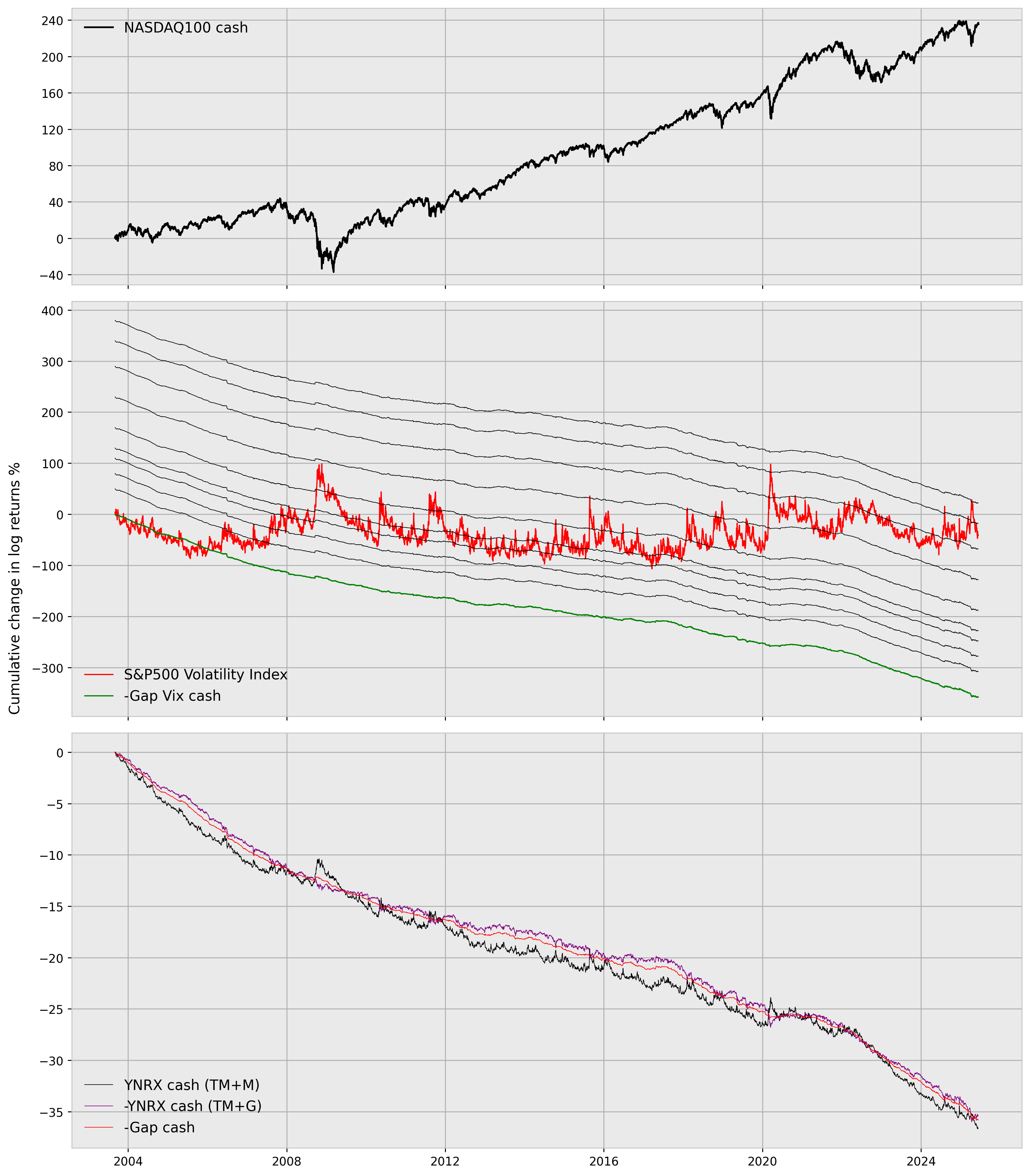 Es como si todo cuadrase desde un principio........... como si estuviese hecho a posta el mercado para que de ese resultado......... es intrigante. De hecho, y ya se explicará mejor el tema, esas grandes caídas solo se detectaban al aplicar los modelos YNRX, MBI y RSG sobre el activo (Nasdaq100), pero estos modelos no eran capaces de detectar los mínimos parciales (los mas pequeños). Analogamente, trazados esos modelos sobre el indice de volatilidad implícita, solo capta de manera natural las caídas pequeñas, pero no las grandes, las grandes solo se captan con el primer gráfico. BOOOOOMMMMMMM CEREBRAL