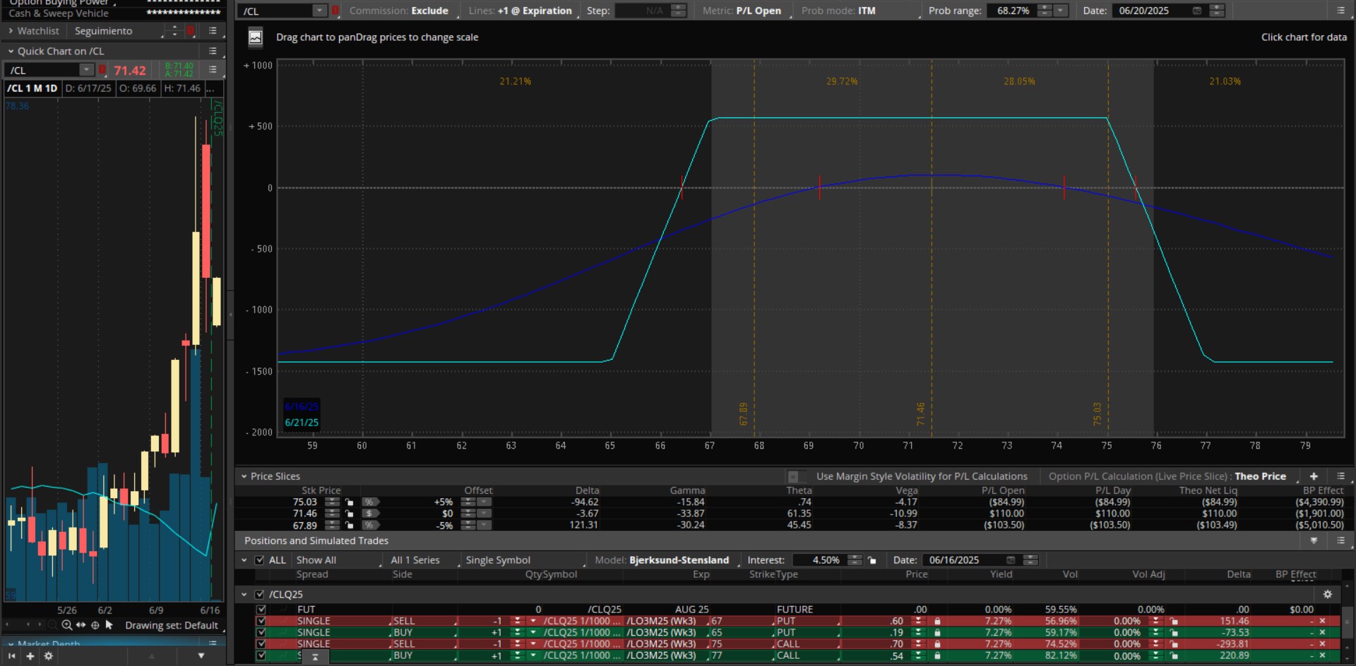 Ahora en la apertura he simulado un IC. Vto el viernes 4DTE. Un IC en el petroleo. No creo me atreviera en real, jamás lo he operado, pero ves a saber igual triunfa.