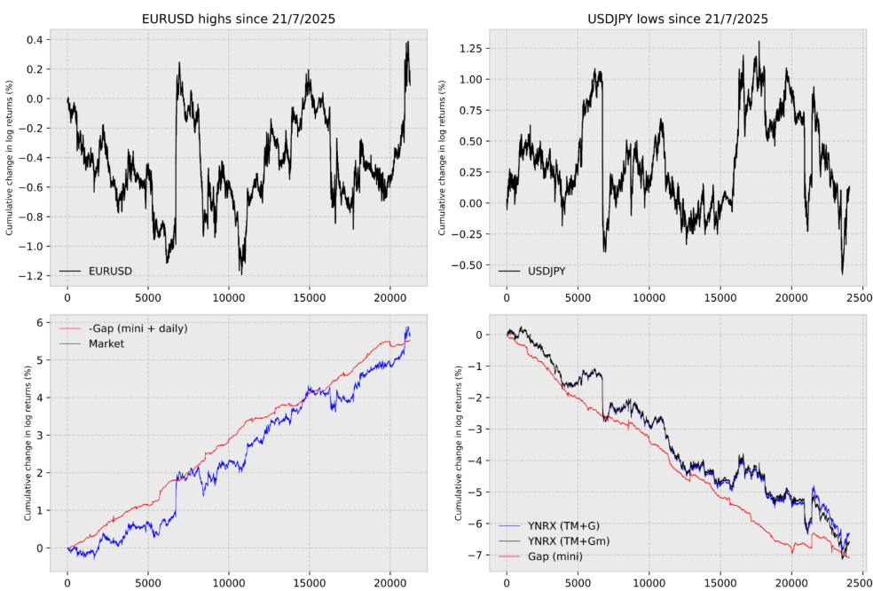 Cómo puede la Miniestructura detectar desde el 18 de agosto los máximos del EURUSD y los mínimos del USDJPY, pero al estacionalizar esos dos pares de divisas y sus modelos, detectar los mínimos estacionales del EURUSD y los máximos del USDJPY