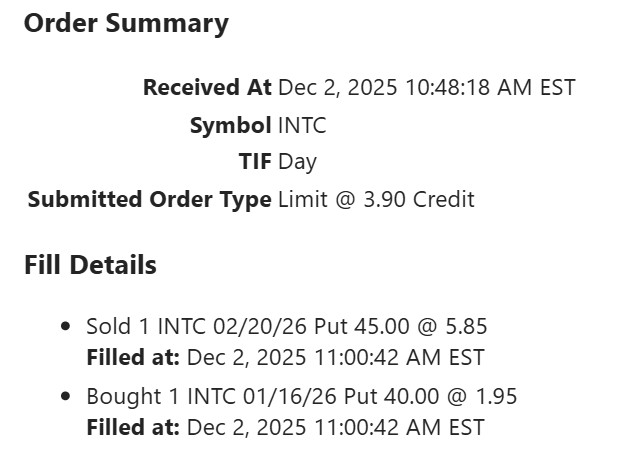Por el otro lado rolé la short put40 vto enero a 45 febrero ingresando 3.90 por acción.