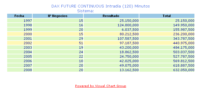 El comienzo del año 2008 fue bueno para el sistema pero los siguientes meses fue perdiendo y al final acabó con ganancias mínimas y muchas operaciones.