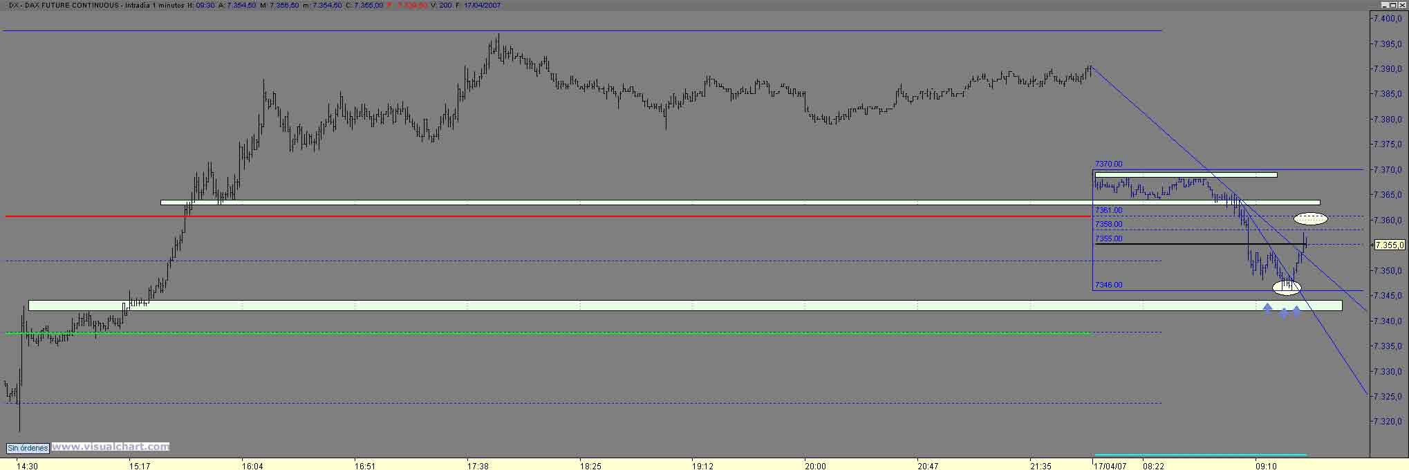 Muy buenos y primaverales dias , hoy las perspectivas matinales eran verdes verdes verdes , aunque ya sabemos que en funcion de la franja horaria el meneito en la apertura europea dio una buena opcion de entrada , siempre valorando el punto de parada hacia el cierre del gap prueba de lo verde que era es que se quedo a la mitad y nos dejo una esxtructura alcista con obj de 1 ( 7309) y de 2 (7320) para el segundo tramo mientras este por encima del 300 302 iremos al 20 . Un Saludo