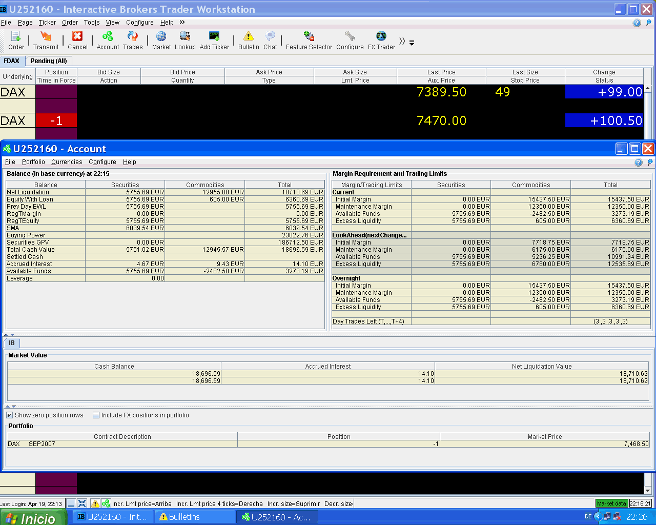 Te propongo una cosa para que compruebes mi verdadera intención. Ya que tienes cuenta en IB, solicita las claves para poder hacer paper trading y comprueba como se desarrollaria la estrategia teniendo las opciones. No te cobran y aprenderias algo, aunque te creas que ya lo sabes todo, algo que tampoco es muy positivo que salga de uno mismo.