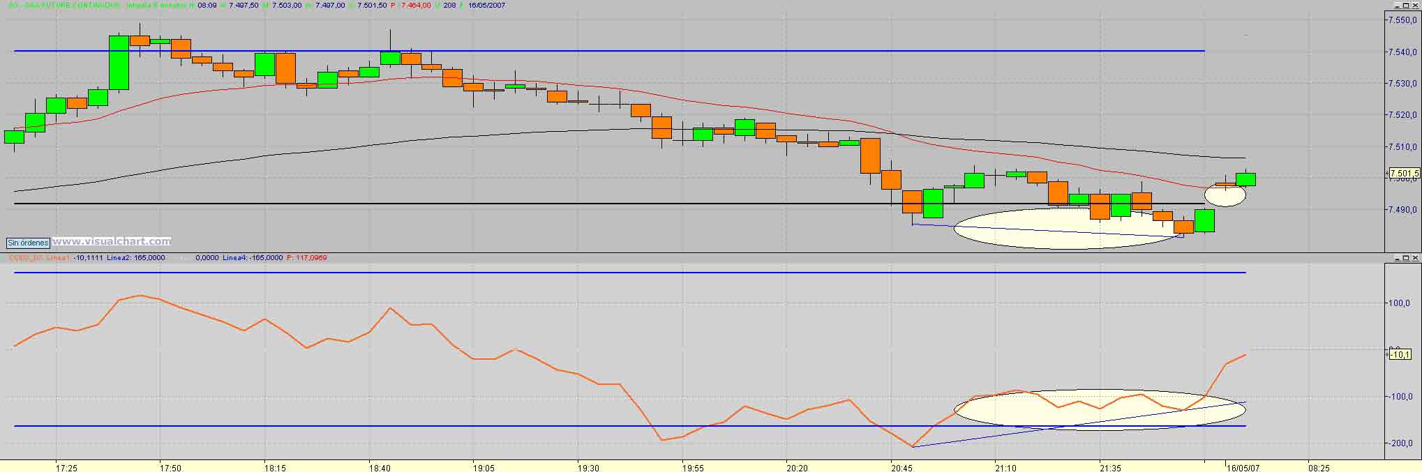 Muy buenos dias ya estamos en la lucha diaria hoy tenemos practicamente una apèrtura en el mismo cierre mi intuicion me dice que como no podemos estar solo mirando las velas vamos a jugarnos unos largos valorando que estamos encima del pivot encima de la m20 de 5m y que carajo que hay que ganar duros y el que mira no gana , tambien tenemos dibujada una divg en 5m pero claro a estas hora como que dice poco pero bueno puesto a reforzar nuestra posicion vale, el stop el minimo de hoy de momento el obj a`priori el 20 22 si nos sacan antes algo sacaremos sino seguiremos con hasta donde nos lleve Saludos