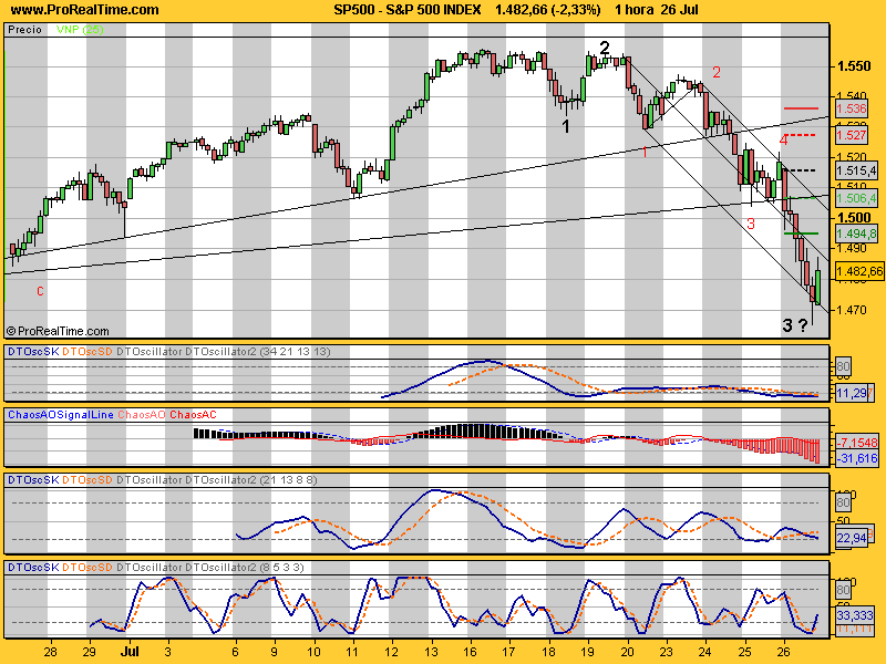 lo malo del recuento es que la solución está a la derecha, en ese maldito espacio que está en blanco cuando tú lo haces. Pero también es lo bueno: como leí a un forero de cuyo nombre no me acuerdo, aunque quiero, la incertidumbre es lo que hace que esto valga, sin incertidumbre no hay posibilidad de especular. El elliotwave ese de marras es mogollón de divertido, pero me fío de él lo mismo que de un banco fundado por el Dioni. De hecho el recuento del Dax era diferente en el gráfico diario, semanal y mensual. El del diario era cañero, la 1ª onda duraba hasta el 2006 (mayo) y la 3 se acababa en diciembre