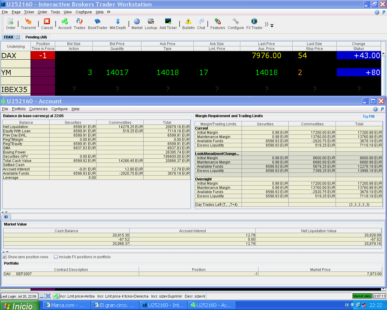 hoy retiré 2.000 EUR de la cuenta, creo que ya no me harán falta. De los 9.000 EUR que envié en los últimos meses para que no me echaran del mercado ya sólo quedan 7.000 EUR.