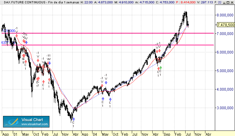 Tendencias hay muchas y los retrocesos de cada tendencia son similares en magnitud y ahi esta el ejemplo del dax en semanal con una media de 30 periodos.