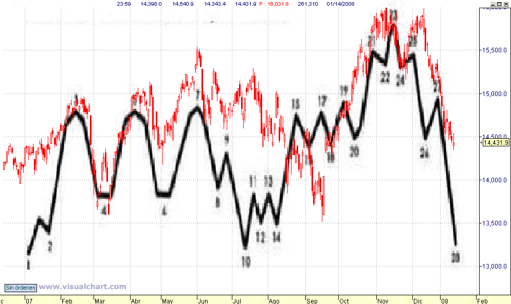 muy interesantes las siimilitudes, y tambien muy conguentes. Si los mercados son la expresion de multitud de opiniones de la masa, es de suponer que a circunstancias parecidas haya reacciones similares. Por tanto, la representacion de dichas reacciones graficamente debe de tener cierta similitud en la forma (grafico).