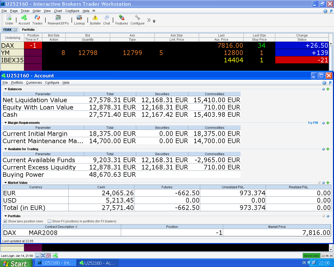 para que pueda triplicar el corto aún tiene que bajar mucho el DAX, en Interactivebrokers la garantía de mantenimiento para 1 contrato es 14.700 EUR, por el momento, si siguen bajando los mercados también las bajarán.