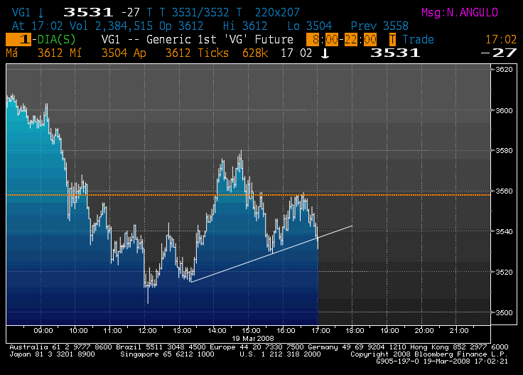 a continuación les adjunto un grafico con un posible HCH, digo posible, pues si somos puristas, esta figura es de vuelta y debería aparecer al final de una tendencia alcista. Aquí, el posible HCH no aparece al final de una tendencia alcista. Así, es por ello que me gustaría que me diesen su opinión al respecto.
