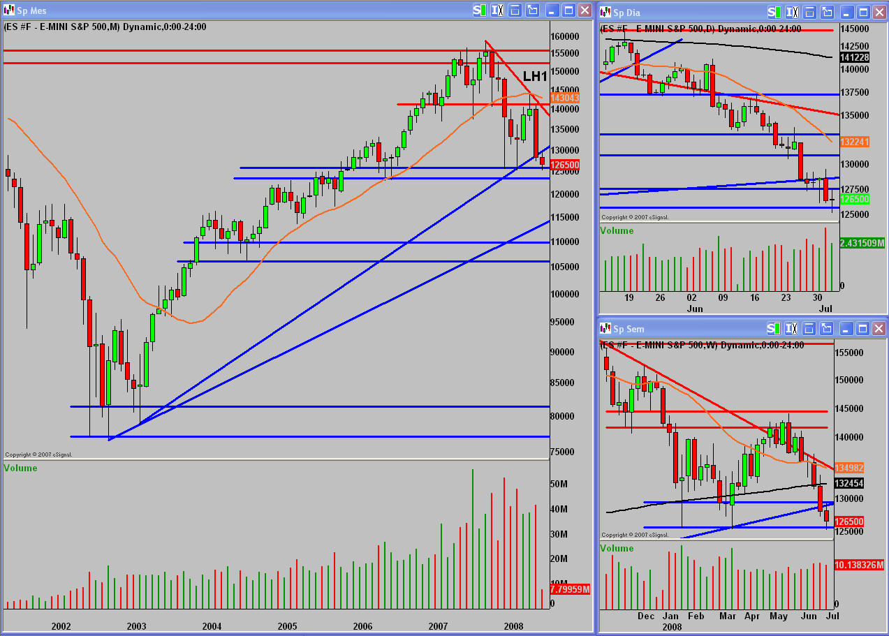 Durante esta semana todos los intentos por producir un rebote en los entornos del soporte mayor, 1270, han fracasado. La pérdida de estos niveles puede suponer facilmente una bajada de 100 puntos, para visitar la siguiente directriz alcista. Reparar un patrón en escala mensual de estas caracteristicas requiere de un mínimo de 4 meses, siendo muy optimistas, por lo cual lo recomendable es seguir la tendencia, no jugar a adivinos de suelo de mercado y abstenerse de negociar en largo, al menos en acciones, y buscar el lado corto del mercado para subirse al carro de los bajistas, si se sabe negociar en corto y si no abstenerse de hacer nada. Cuando se produzca el tan anhelado suelo se comentará y habrá tiempo suficiente para por análisis técnico comprobar que se ha producido una figura de vuelta, como ya ocurrió en el 2003 con un clarísimo doble suelo en gráfico mensual.
