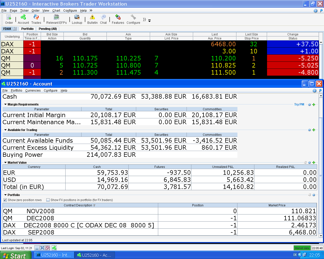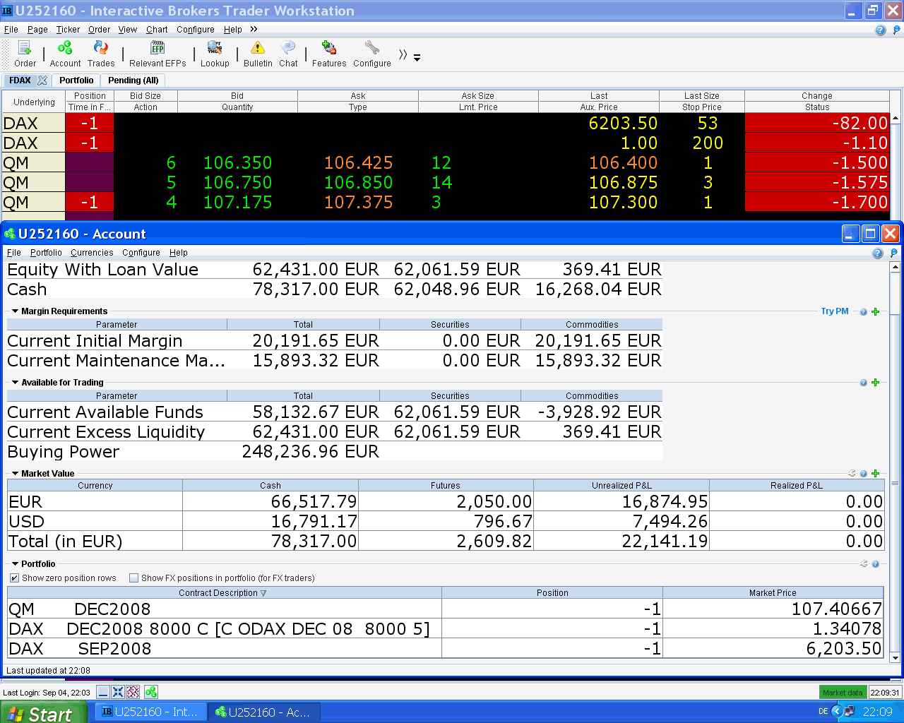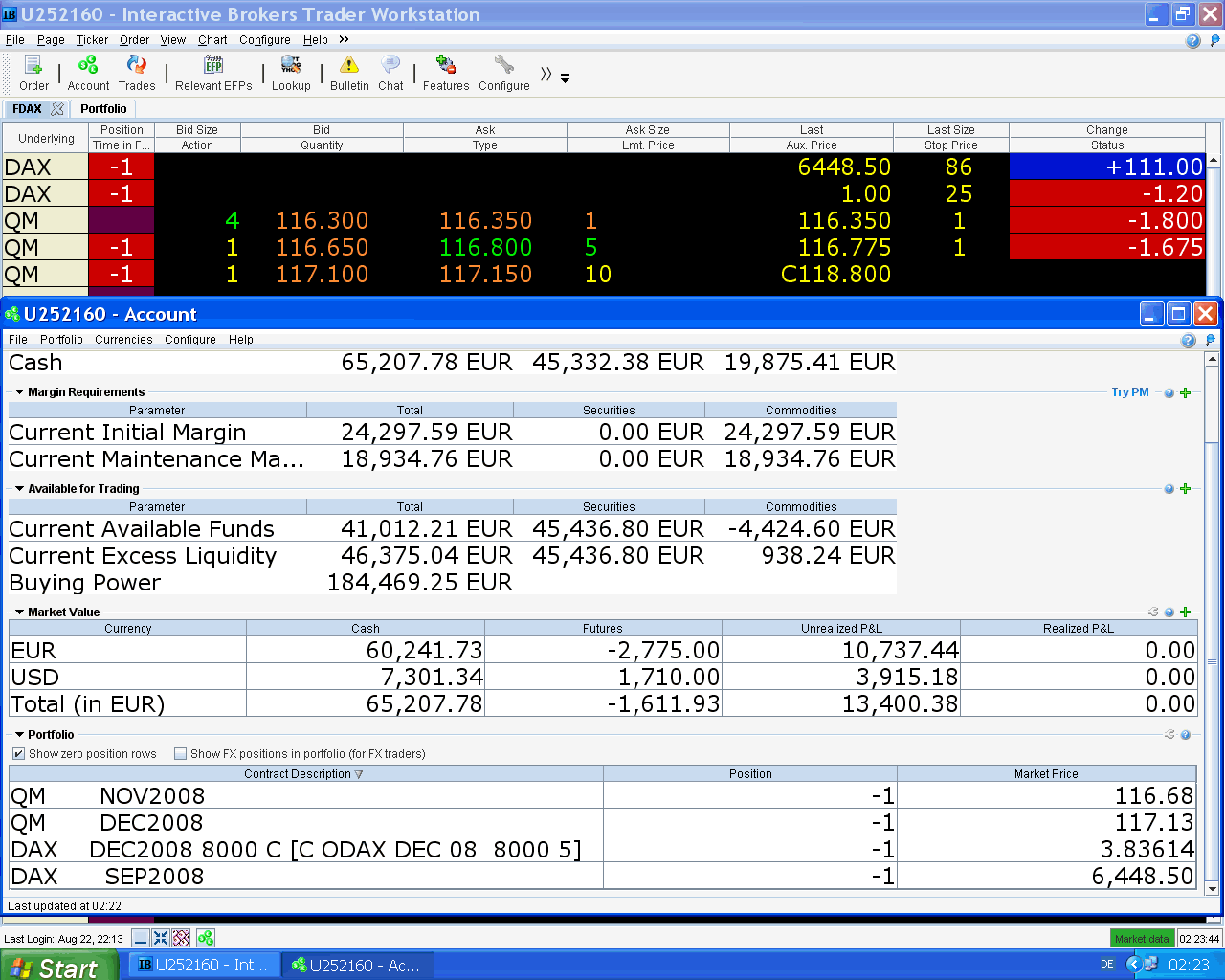 concluye una de mis mejores semanas de los últimos dos años con 12.000 EUR de beneficios, tal vez sea la mejor, no lo sé con certeza. Bajó el DAX, el petróleo y el EURO y todo eso me favorece.
