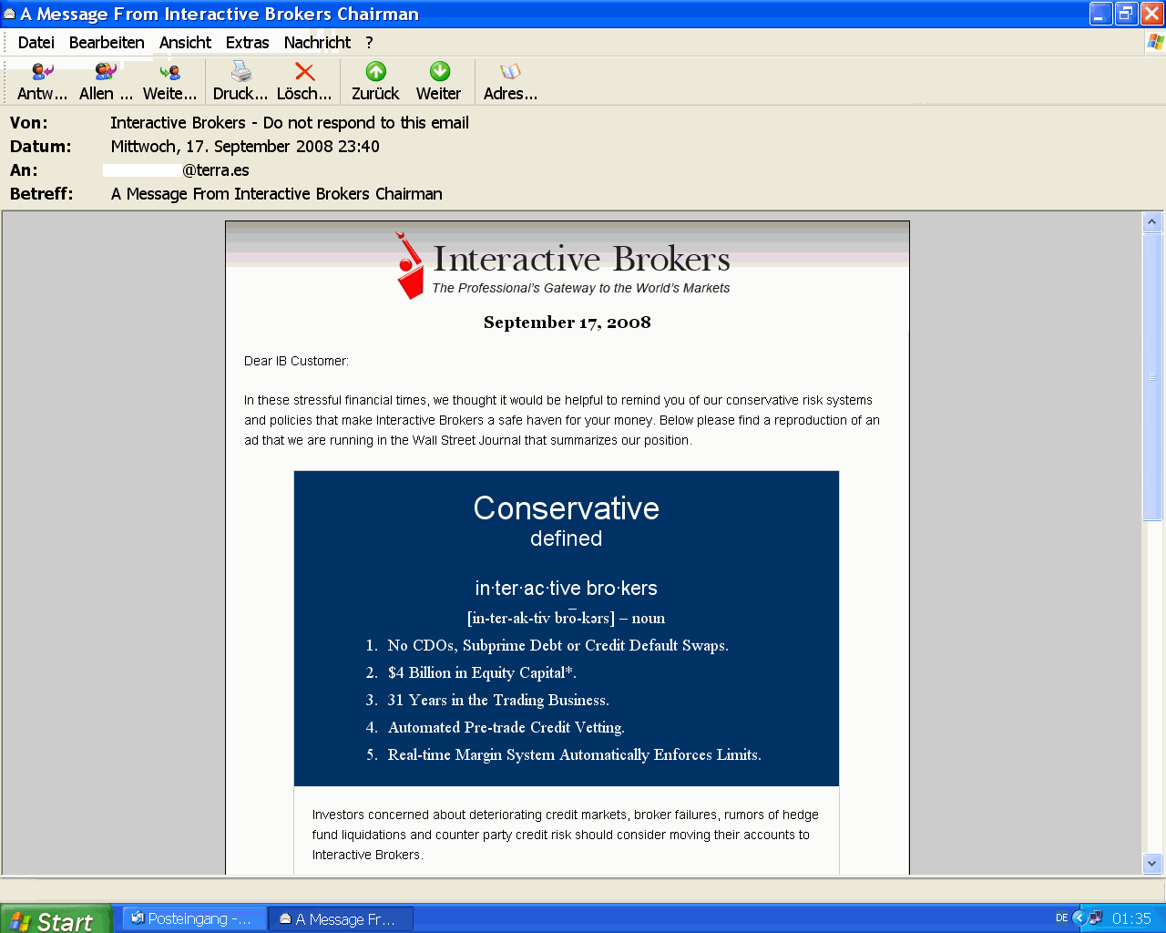 Como los de Interactive Brokers leen en el foro se enteraron de que algunos empiezan a preocuparse por mi dinero y reaccionaron enseguida, acabo de recibir este e-mail