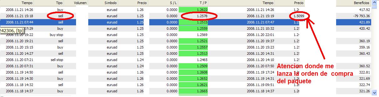 Respecto al cierre de posiciones, hay veces que puede parecer que se han ejectuado a un precio que el gráfico no muestra, pero eso se debe a que el gráfico muestra el precio Bid (es decir, dependiendo de la posición, para saber hasta donde ha llegado el precio, hay que tener en cuenta el spread).