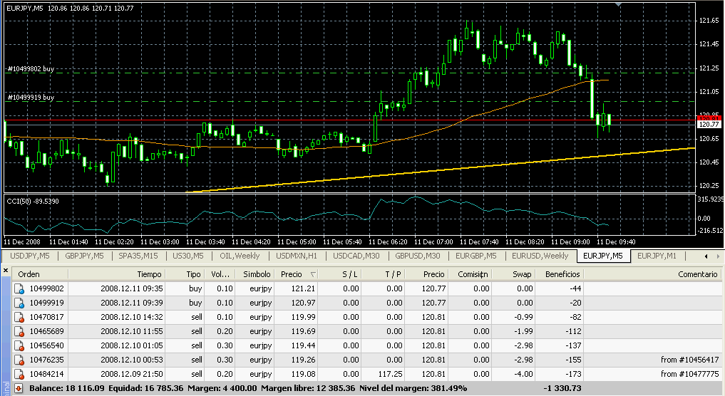 Si que es cierto que en un par como el usd/mxn, que tiene 400 pipos de spread, puede que mi operativa funcione peor, pero sobretodo por que me aburriría de esperar a que el precio se moviese y al final haría tonterías.