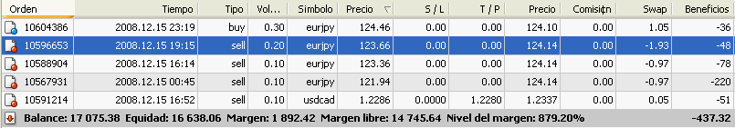 Yo voy bien, como de costumbre, ya le tengo pillado el truco a este método y lo he dicho mil veces, me adapto a él como un guante a una mano. Ahora estoy pensando si cerrar todo o no. Ya son 650 euros netos de beneficio en día y medio y esa cantidad, según mi criterio, para una cuenta de 16.000 euros es más que suficiente.