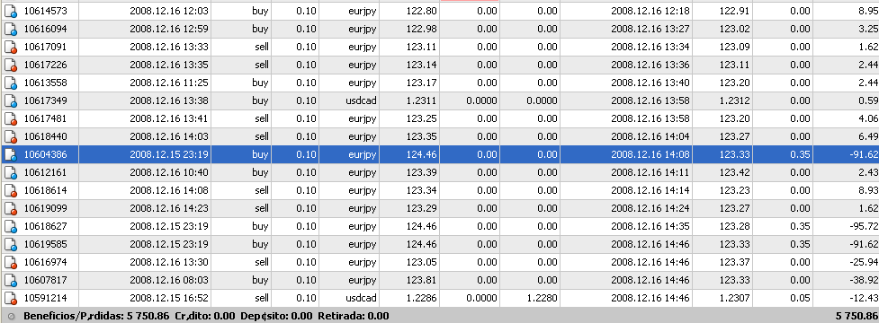 Por ejemplo. Ahora estoy preparando todo para el cierre. Acabo de quitar todas las sell del eur/jpy y todas las buy del usd/cad. Si no soy disciplinado y el precio se da la vuelta sin que yo cierre todo rápido puedo perder 100 ó 200 euros en un plis-plas y sólo por la avaricia de sacar 50 más al cierre. Ese fallo es muy habitual y merma mucho los resultados finales. Son aspectos que hay que controlar ya que modifican totálmente los resultados.