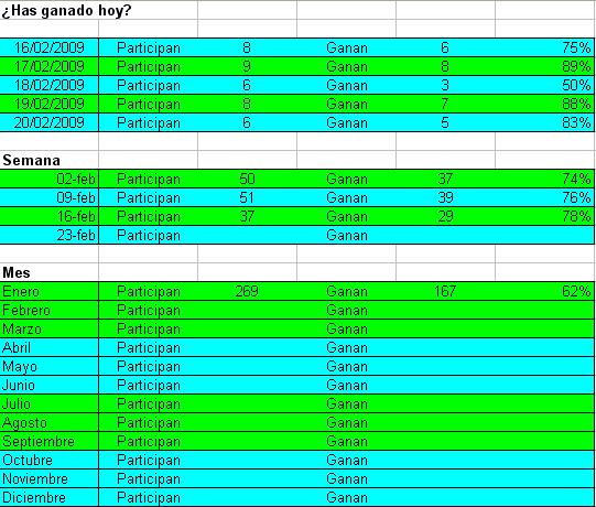 ¿Has ganado hoy? 23 Febrero 2009 Lunes