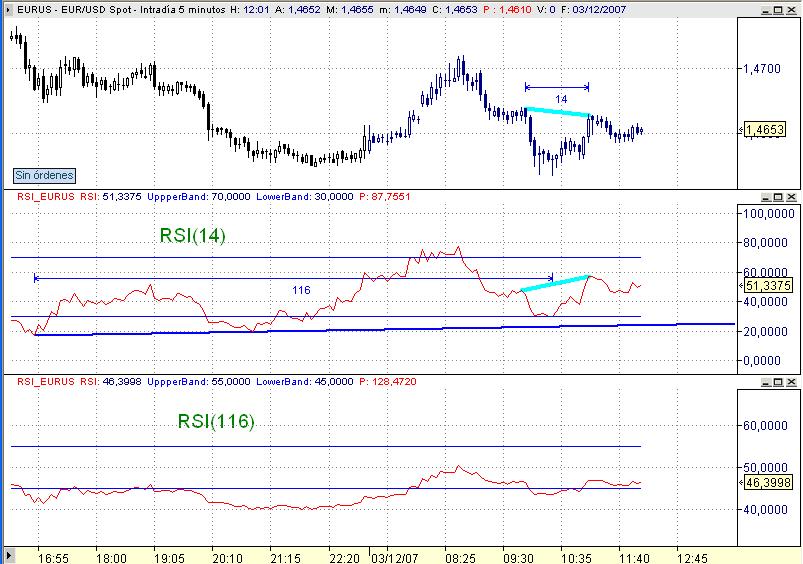 Si consideramos un RSI(14) tendremos que considerar la barra -15 que antes era -14 además de la barra actual donde se ve la divergencia.