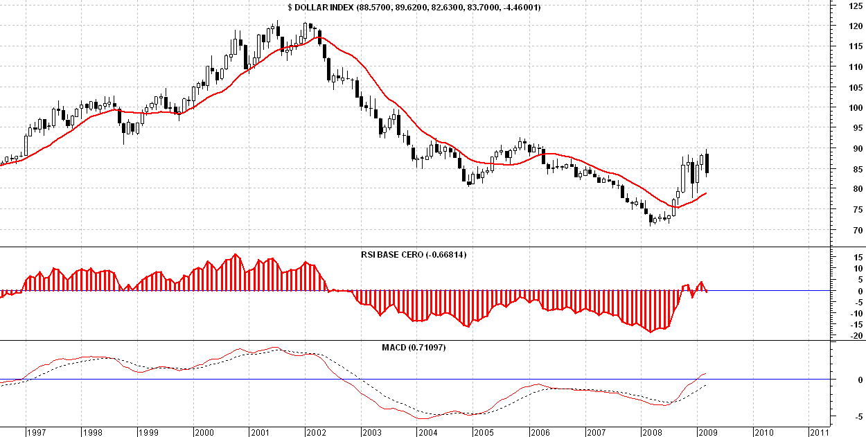 He de añadir que casualmente en el Dolar Index , en gráfico mensual, se ha cortado al alza el MACD, lo que sin duda apoya una recuperación del dólar con respecto a la gran mayoría de divisas.