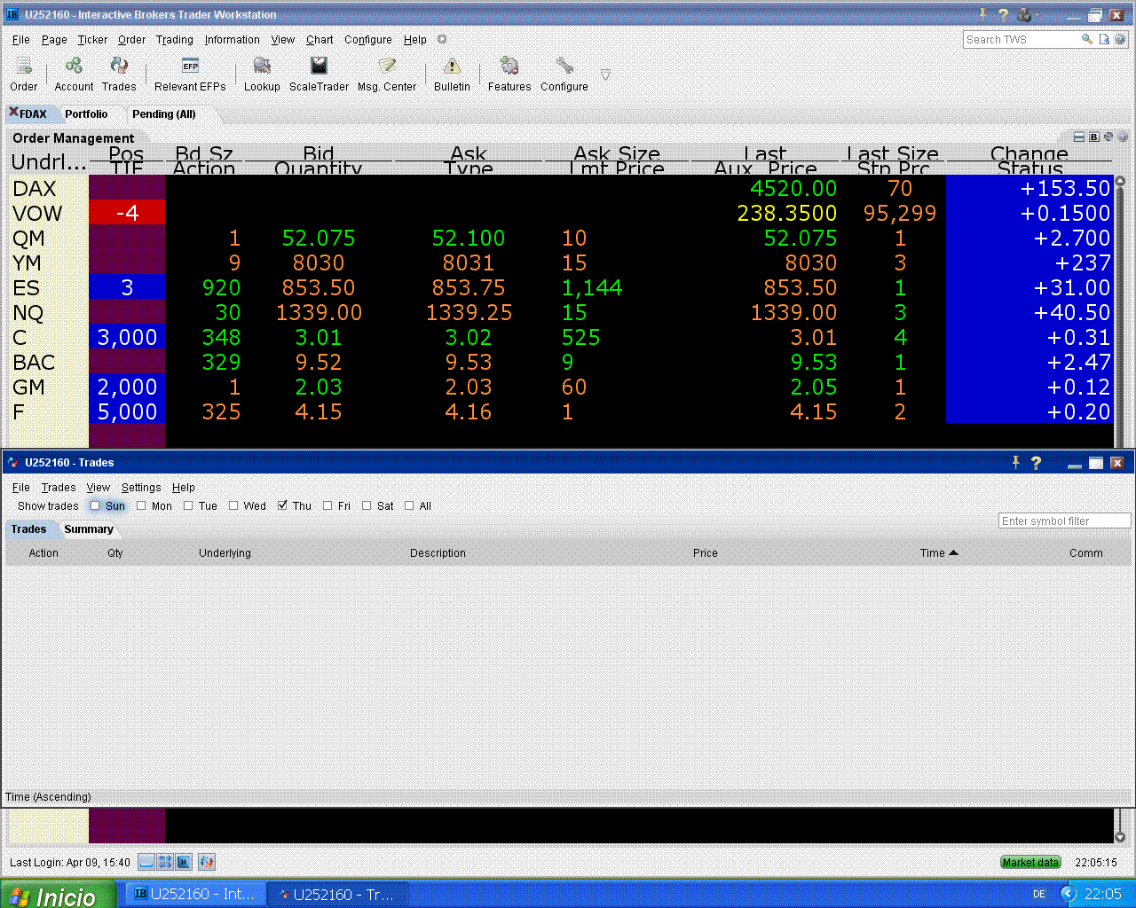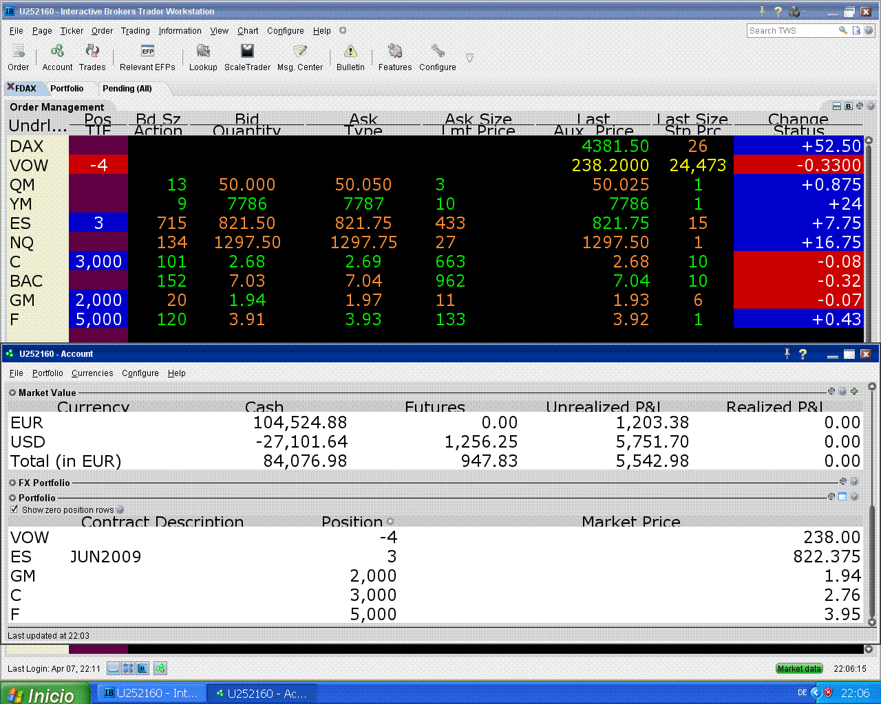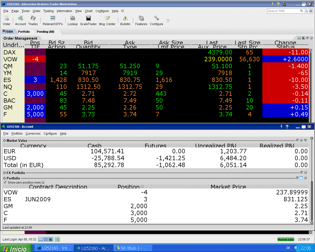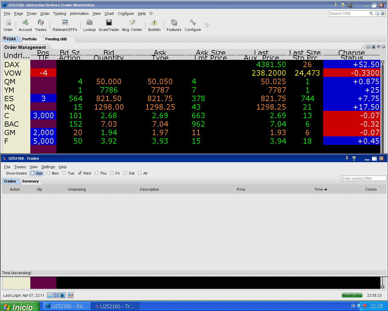 hoy me fallaron Citi y Ford pero subió el S&P, eso tampoco está mal.
