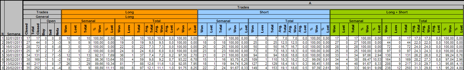 Como se puede ver, en este sistema es el precio el que marca la pauta, dejando el acierto del movimiento futuro en un segundo planp. Ojo!!, esto no quiere decir que no tenga importancia acertar para donde va tirar el precio, de hecho, si hubieramos acertado la subida de este año, ahora estariamos en beneficios por encima del retorno esperado. Pero lo importante es ver como se ha comportado en un rango en contra de unos 900 pipos. La volatilidad de la équity siempre ha estado muy controlada.