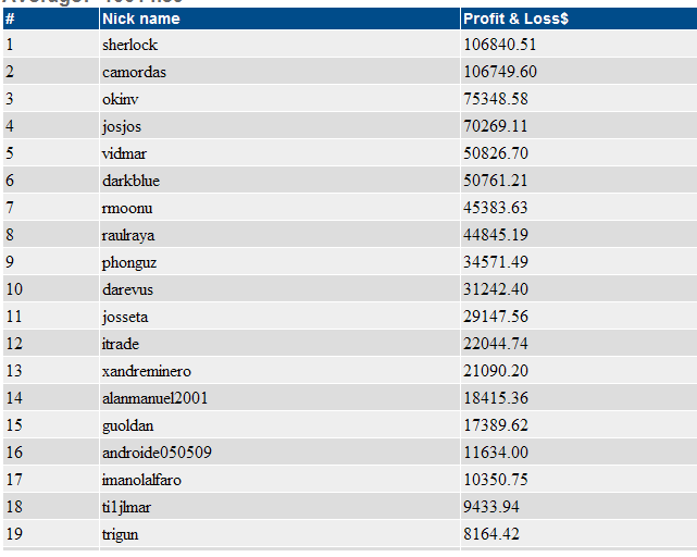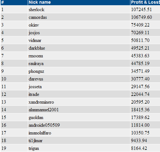 Re: Torneo de Trading 2ª parte