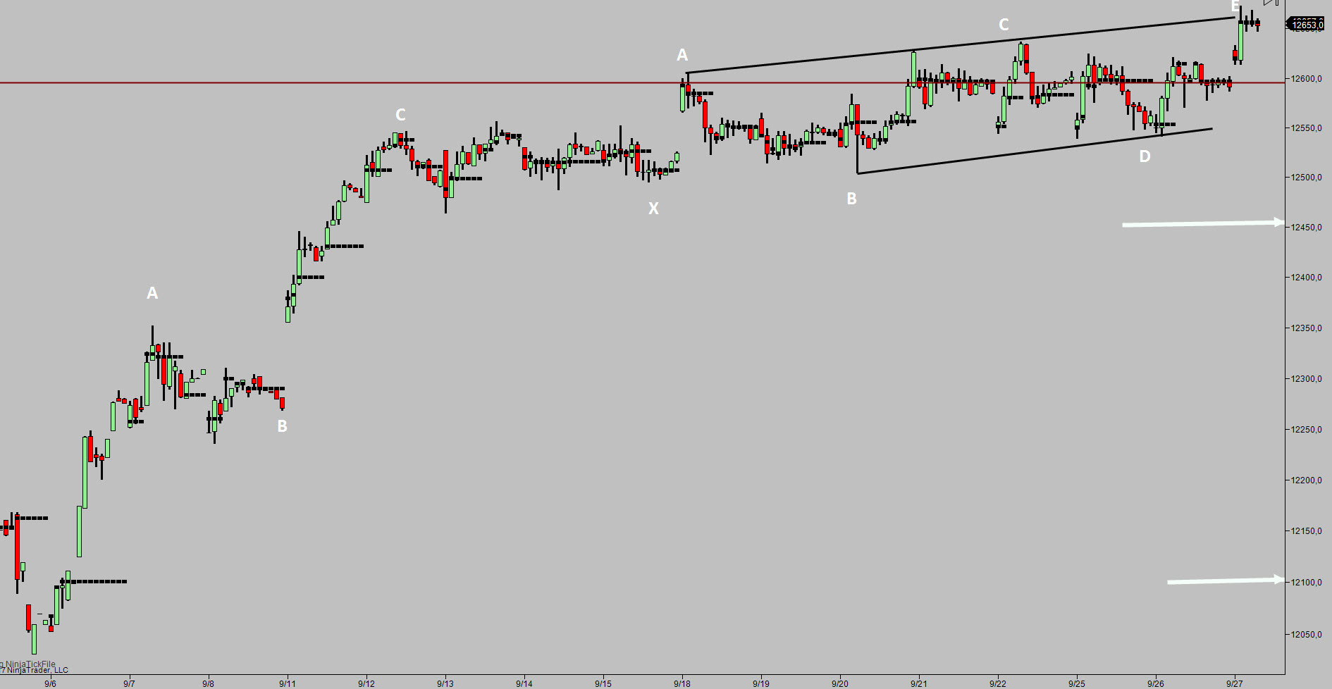 Posibilidad del fin de pata B grande del Dax, compuesto de una doble combinación, falta un timing para ello, y aparte no superar los máximos de hoy.