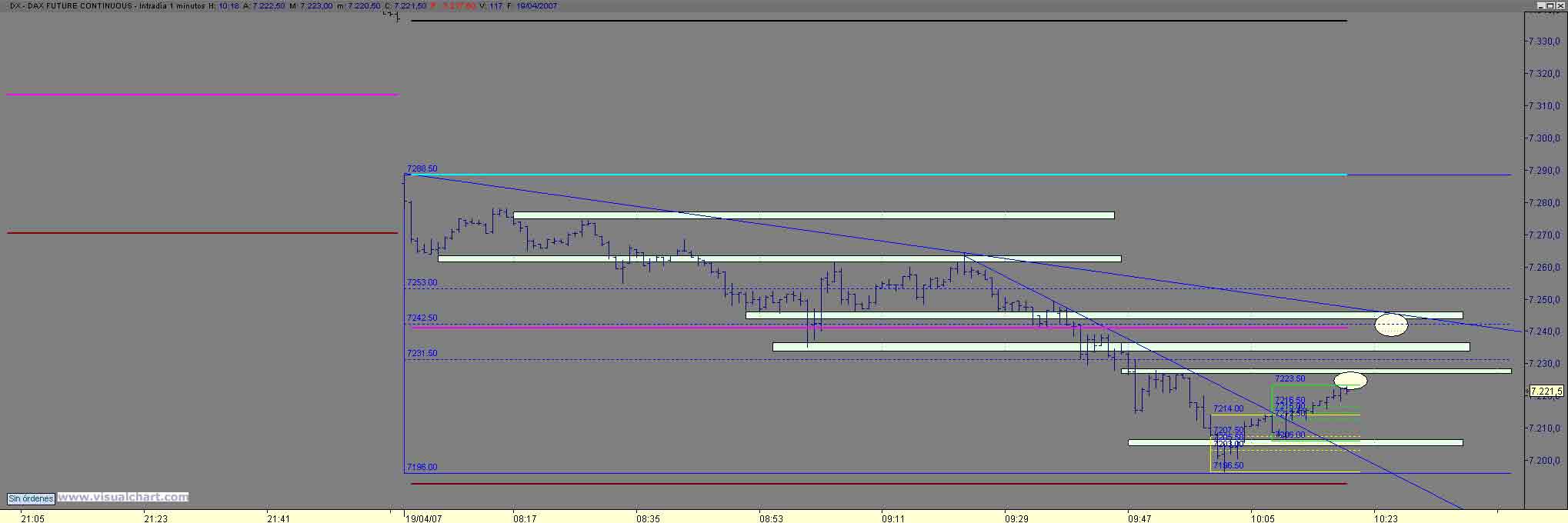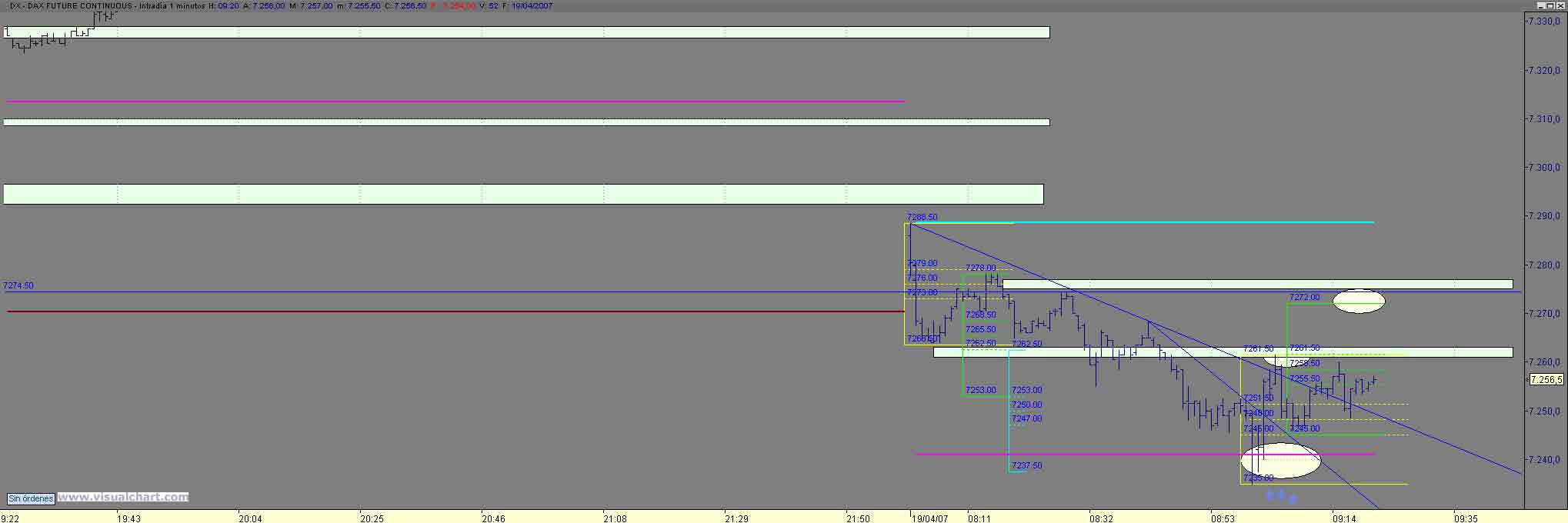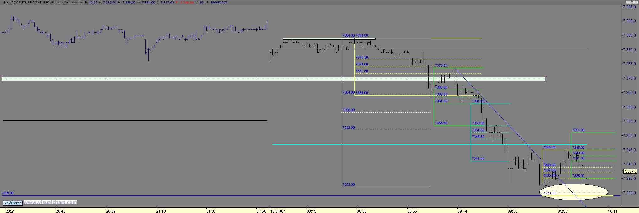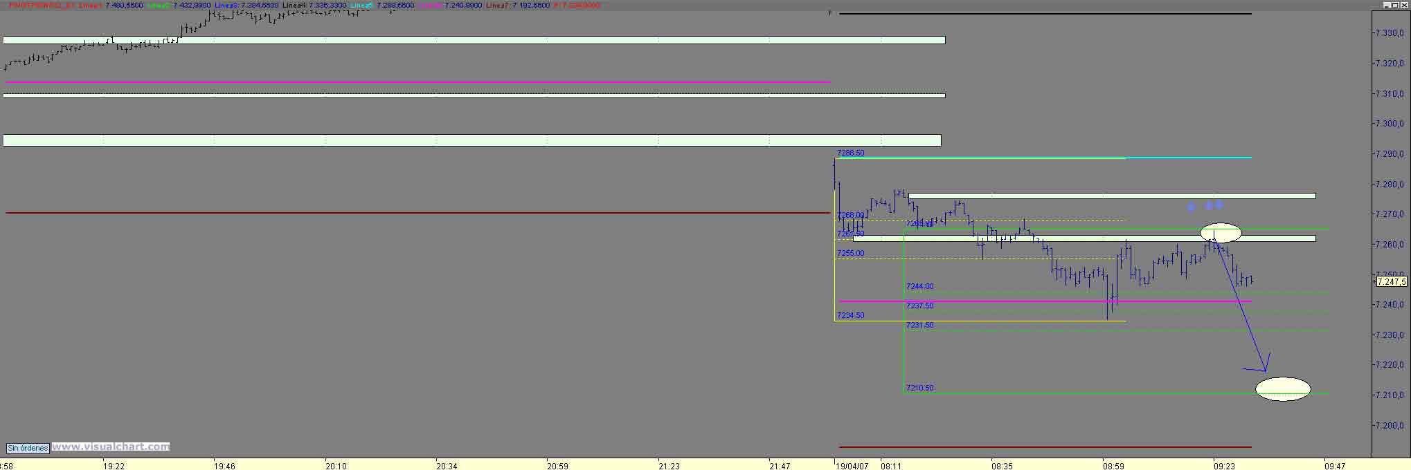B tardes , pues tras el arreon noticiero ( mi stop salto 8 ptos mas arriba) solo nos quedaba buscar cortos alla donde diera un posibilidad con stop cercano y esa violacion de 1p de los maximos y vuelta ivitaba a ello y nos lo hizo en en dos estructuras hasta el 7374 (os suena??) mucha coincidencia como para no tomar largos (era el maximo matinal asi como el 61% de Fibo desde el arreon noticiero hasta el 7411.50) objetivo natutal de no perder el 74 el 88 90 y posteriromente 402 405 , bueno pues ahi esta Un Saludo