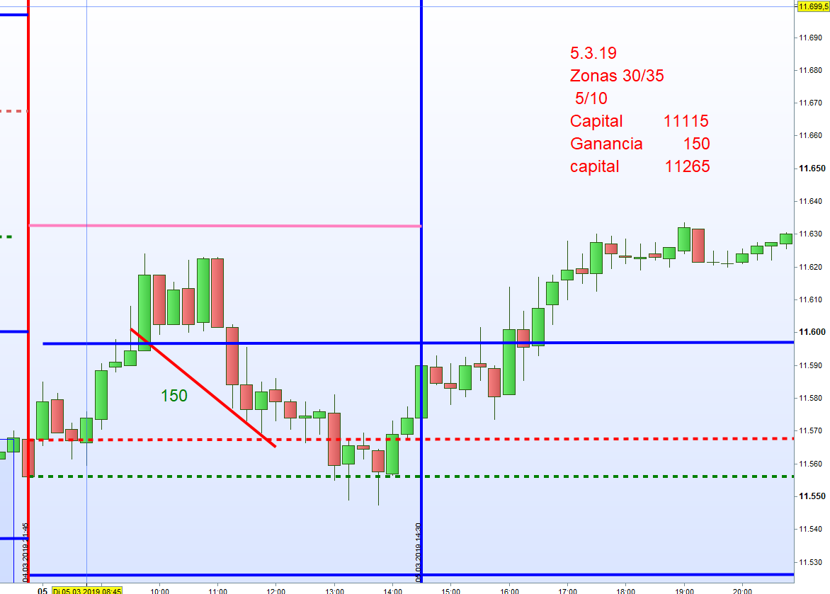 Debido al aumento de contratos con el dinero ganado y los nuevos set ups por la tarde el beneficio son 1650€ lo que nos permite de aumentar los contratos de 5/10 a 6/12.