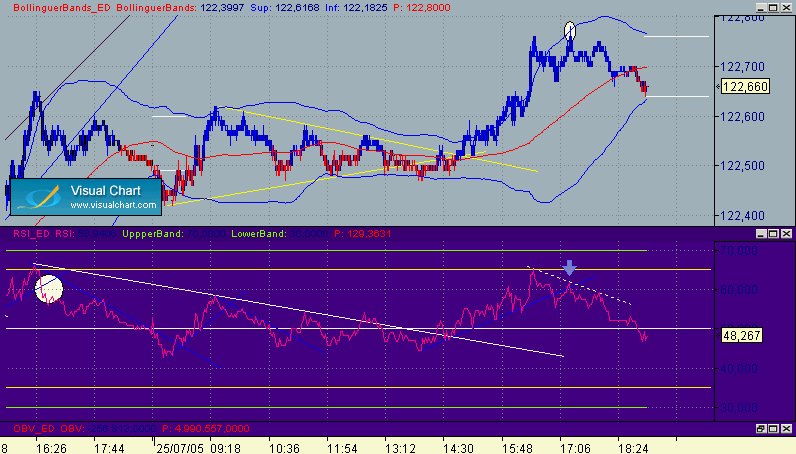 Rotura confirmada con retroceso a la linea y posterior rotura de volatilidad, justo al techo del probable canal que esta formando. Como se puede apreciar bien claramente en las roturas de directrices y lineas de velocidad, como corras tras el precio para pillar el movimiento, te cuesta sufrir. Mañana veremos si ataca el 123 o se van abajo, formo pequeña divergencia bajista en maximos en 2 y 12 minutos y las bandas han vuelto a cerrars en 2. saludos y suerte