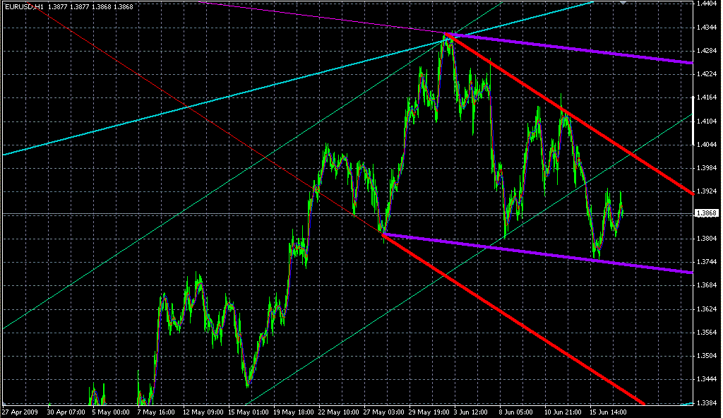 Yo creo que la superación con fuerza de los máximos de ayer en 1.3933 llevaría el precio a la parte alta del canal rojo y a su posterior superación. Y diría que si volvemos a mínimos lo más probable sería romperlos e intentar completar ese H-C-H. Una cosa está clara, tenemos máximos y mínimos decrecientes pero el segundo tramo parece que lo han dejado corto y hayan hecho un lavado de posiciones largas. Todo esto son suposiciones mias. Habrá que seguir el precio que es el que manda.