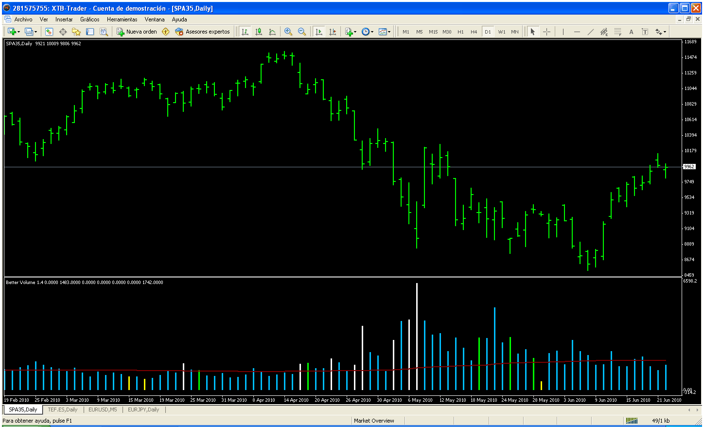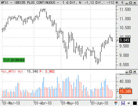 Los mismos graficos con el volumen de los futuros en VisualChart: