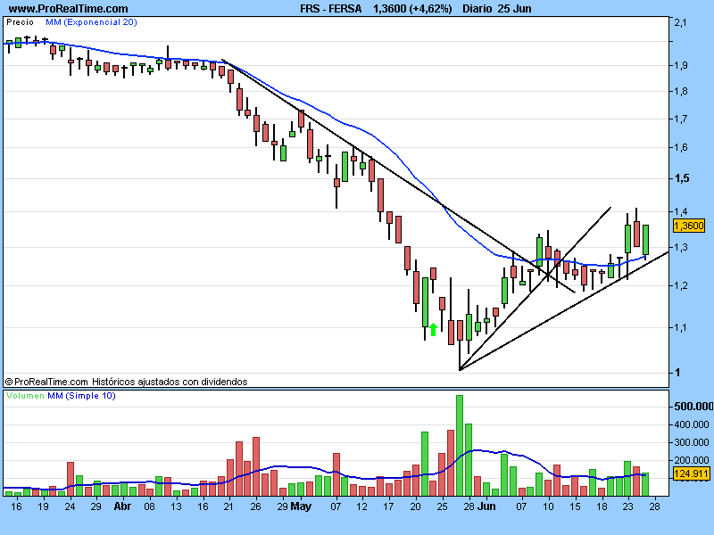 Se trata de Fersa del mercado continuo español,un valor claramente bajista,se aprecia la zona de acumulacion.
