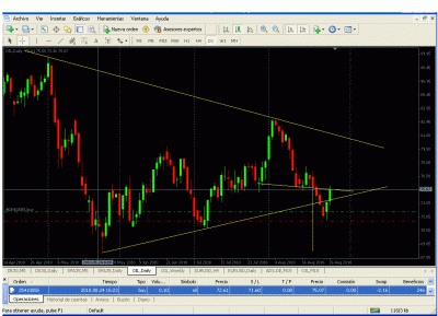 Han entrado los dos largos más. Pero en real tal vez habría cerrado el primer largo y hasta mañana, pero bueno vamos a dejar correr el tema. Acabo de ver que con 1 largo tenías más 200 dolares y ahora con tres tengo -49,50. Cerrado en 73.4 y objetivo cumplido de 200 dolares. Suerte porque me he liado con la colocacion del stop y no lo tenia calculado
