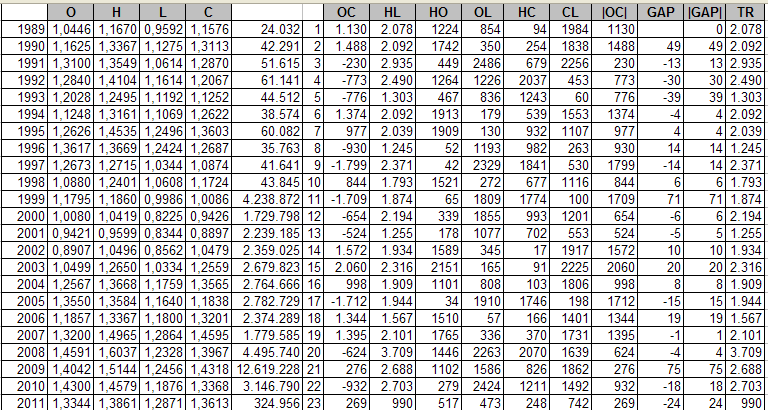 A esto hay que añadior otro tipo de consideraciones, como el estudio de la zona más probable del precio para un par como el eur/usd (los pares con yenes por ejemplo hay que estudiarlos de otra forma). Este gráfico lo pongo como ejemplo de parámetros que toma en consideración este sistema, expolicarlos todos sería muy largo, pero esto vale como muestra.