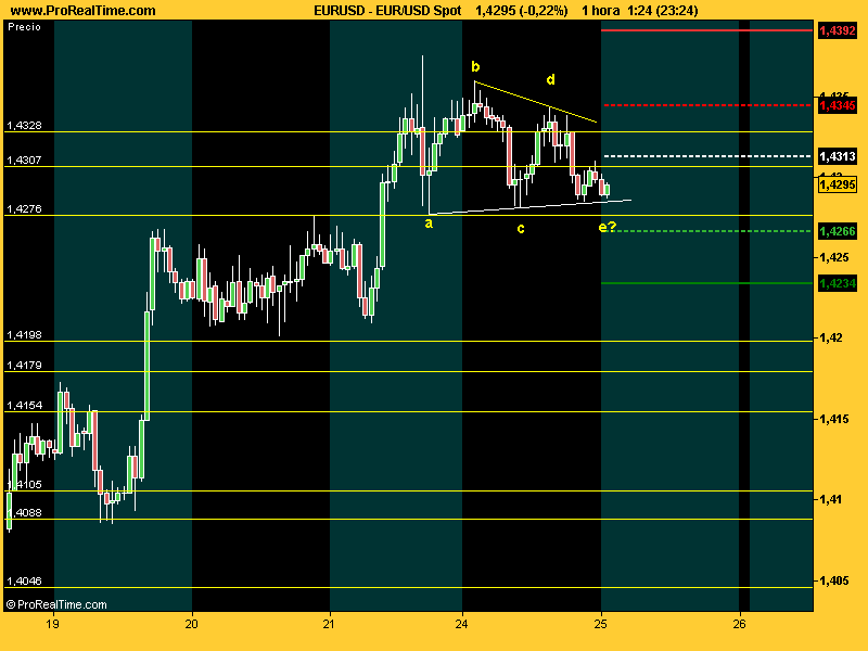 De todas formas en el más corto plazo el euro está alcista desde el 1.4050 y hoy se ha dedicado a consolidar sobre el 1.4280.