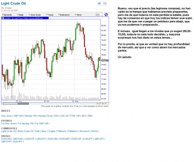 Por cierto en Crude Oil 8 a la vista de las criticas podriamos operar en modo seguimiento del precio continuo en graficos de..........no se 15 minutos............