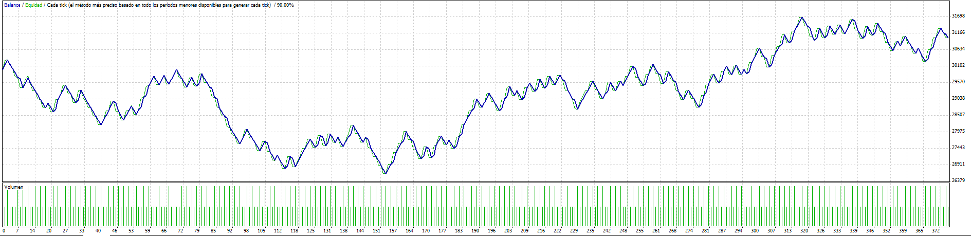 Lo que veo también es que la mejora que se consigue fraccionando cuando el precio retrocede del punto inicial de entrada, es bastante pequeña, así que en el mejor de los casos se queda lo comido por lo servido. Las diferencias que se han visto en esta prueba son más debidas al cambio que se produce en el timing de entrada al variar los stops. como sólo puede tener un conjunto de operaciones abiertas y no inicia otro grupo hasta que no se cierra el anterior, cualquier variación en los stops provoca que el siguiente grupo se abra a otra hora que en la que lo hubiera hecho de no variar los stops.