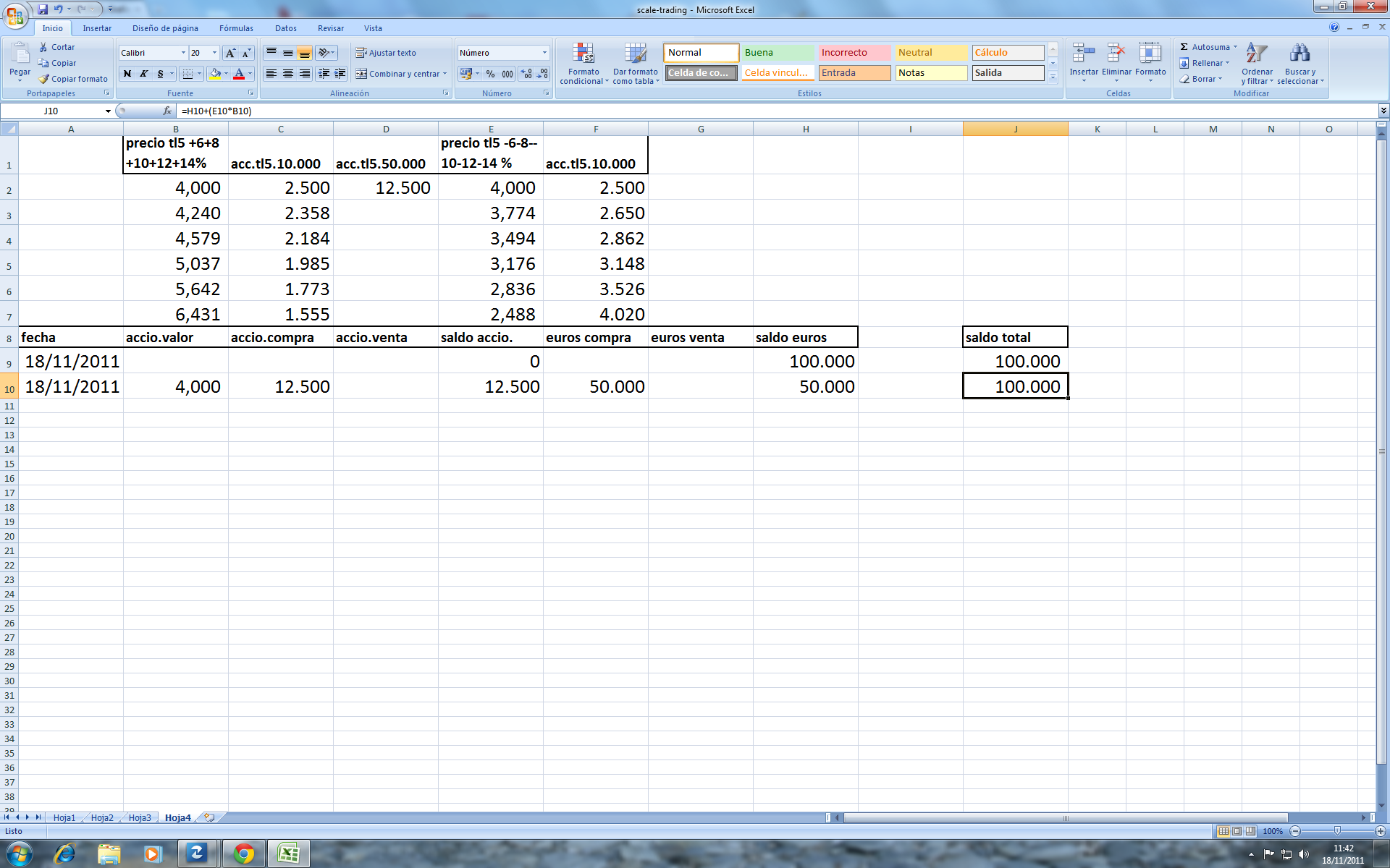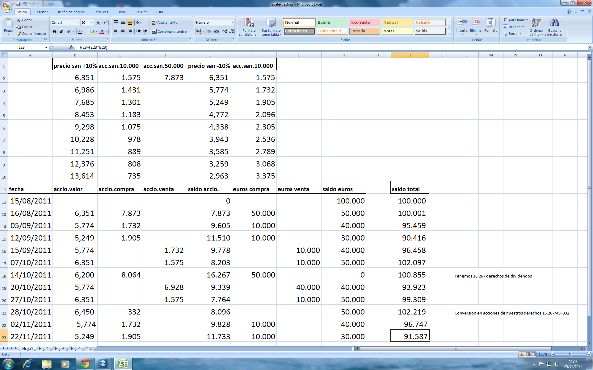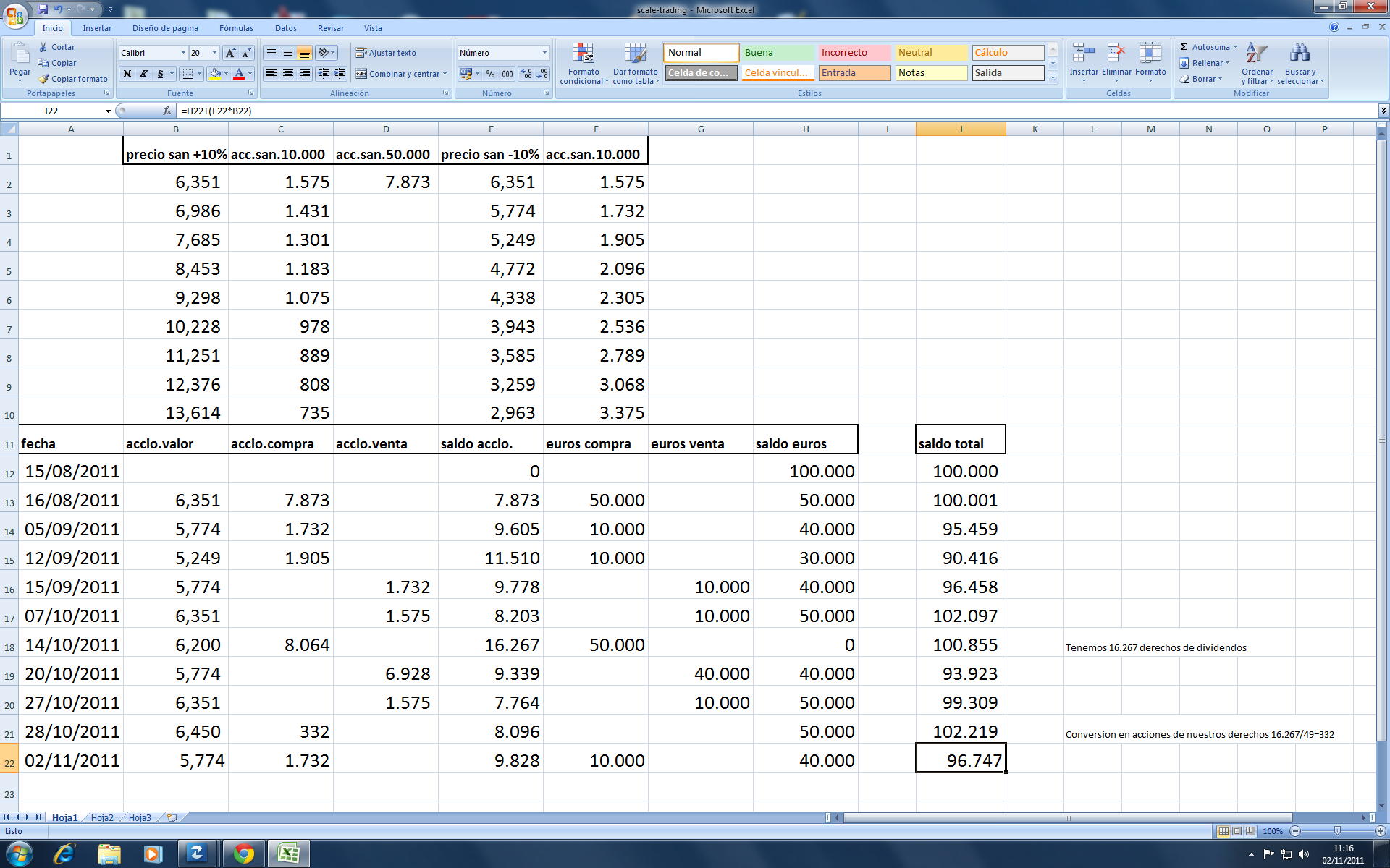 Bien, asi queda la estrategia, despues de acogernos a nuestro derecho a las acciones, 1 por cada 49 derechos, y como tenemos 16.267 derechos nos corresponden 332 acciones, las cuales sumamos a nuestra pequeña cuenta...