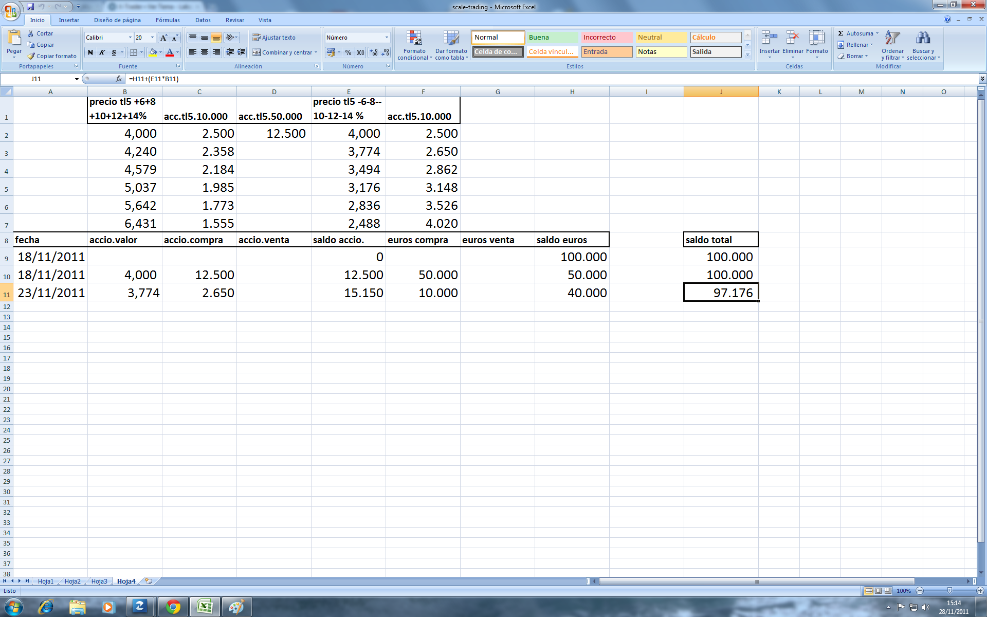 Como veo que el san no se mueve mucho, y que aguanta bien en esos valores, y como ademas puse demasiado espaciados los escalones +-10%, y aprovechando que el otro valor que os comente (tl5), ha tocado hoy de nuevo minimos, he abierto en este valor tl5, mucho mas movido que el san, una scala, de la misma manera que en el san, pero con la diferencia que esta scala la he hecho asimetrica, y los saltos que hace tambien son asimetricos.
