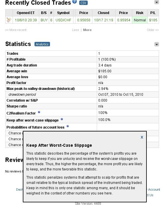 Yo mi track record actual lo puedes ver aqui, y esto es lo que espero hacer en collective2 , aunque ahora mismo como veras he tenido mi primer mes de fuerte perdida un 7% y un 5% en Nov pero bueno llevo un 170% con todos los indices desde marzo y un 230% y290% solamente en el DAX, el sistem que usare n C2 sera la union de ambos asi que tendria un 250% de rentabilidad.