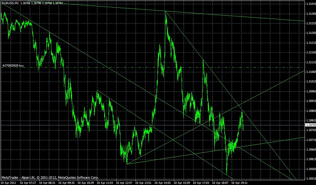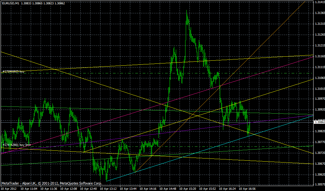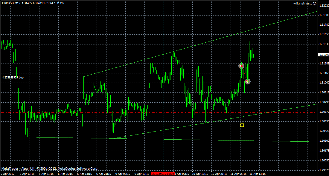 Como se puede observar, ha tocado ya la linea turquesa, pero no me acabo de fiar, yo habia colocado una orden, pero por culpa del desplazamiento temporal, el precio de la linea turquesa ah subido y no me siento comodo a ese precio, vere desde fuera lo que pasa.