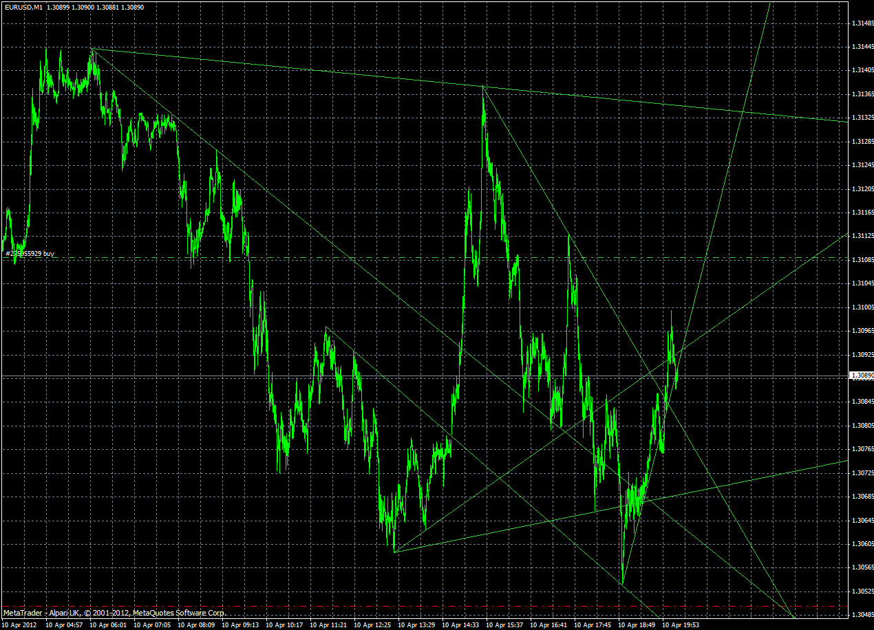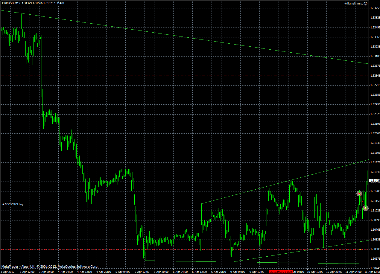 Le veo rebote en los 1.3100, ahora solo quedaria el impulso que lo llebara como minimo hasta el techo marcado en lila, o muchisimo mas, veremos el espacio temporal y la fuerza.