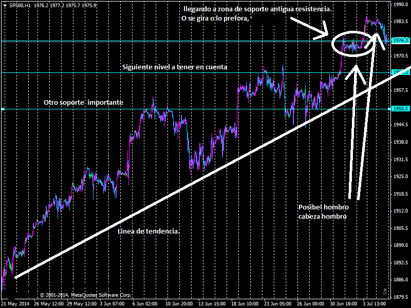 En la posible figura HCH que puede estar formándose el final del posible hombro viene a parar en el segundo soporte donde confluye la linea de tendencia. Esto tiene muchas posibilidades de ser un corto.